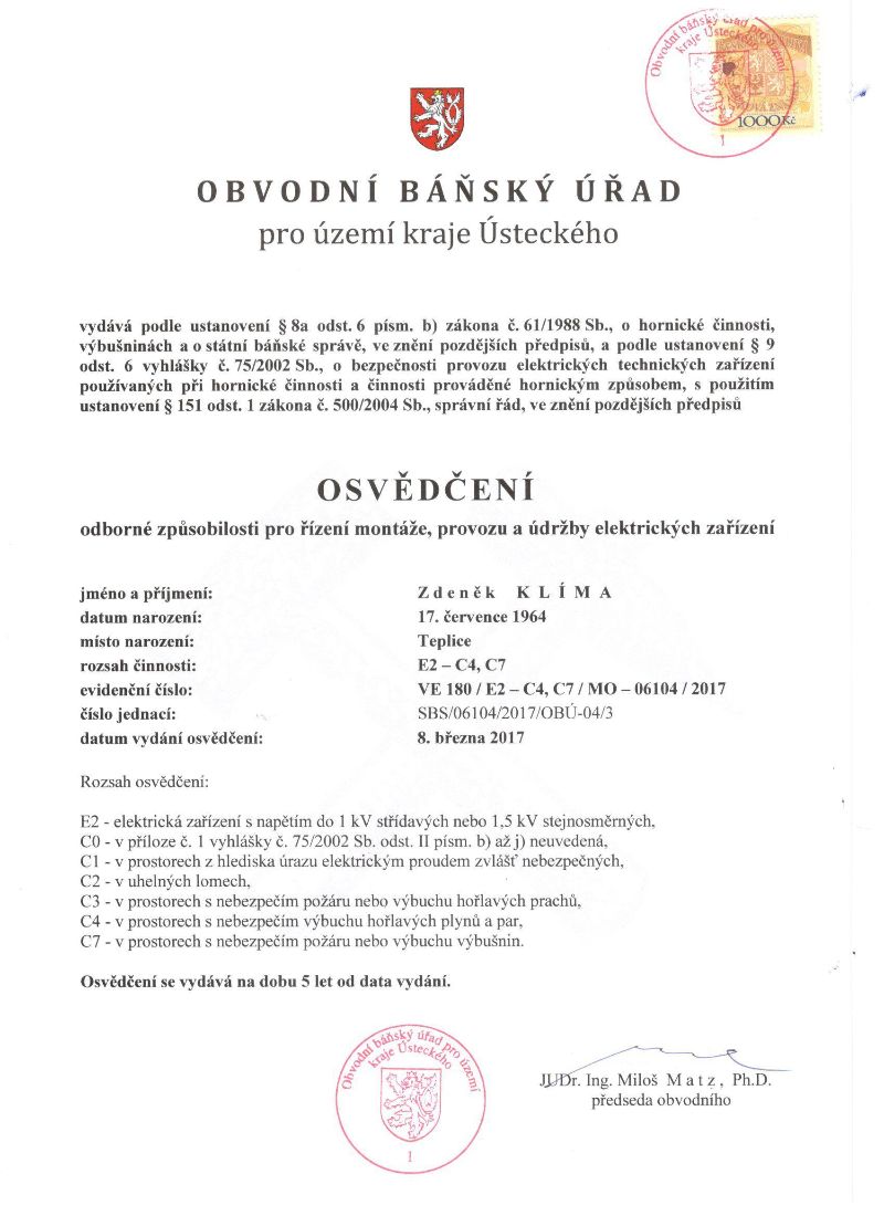 Vlastníme veškerá opravnění, která nám dovolují vykonávat tuto činost od malého projektu v rodinném domě až po závody s chemikaliemi či výbušniami.